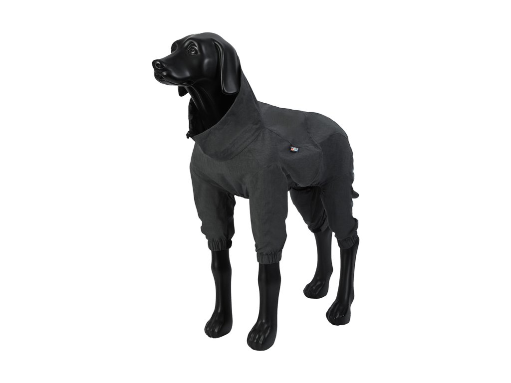 Zip na zádech usnadňuje oblékání kombinézy. Díky zapínání na obou koncích nohavic lze kombinézu snadno upravit tak, aby vyhovovala různě velkým tlapkám a chránila před vodou a nečistotami. Nastavitelný pas a výstřih dodávají dokonalý vzhled a ochranu.