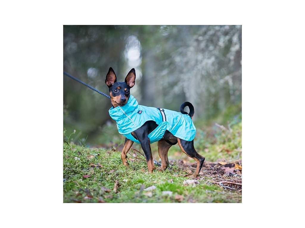 Mírně elastická tkanina ochrání vašeho chlupáče v dešti, reflexní detaily zajistí větší bezpečnost při nočních procházkách. Partie kolem zadních nohou jsou opatřeny praktickými gumičkami, díky kterým bundička zůstane na svém místě, i když v ní bude pejsek řádit.