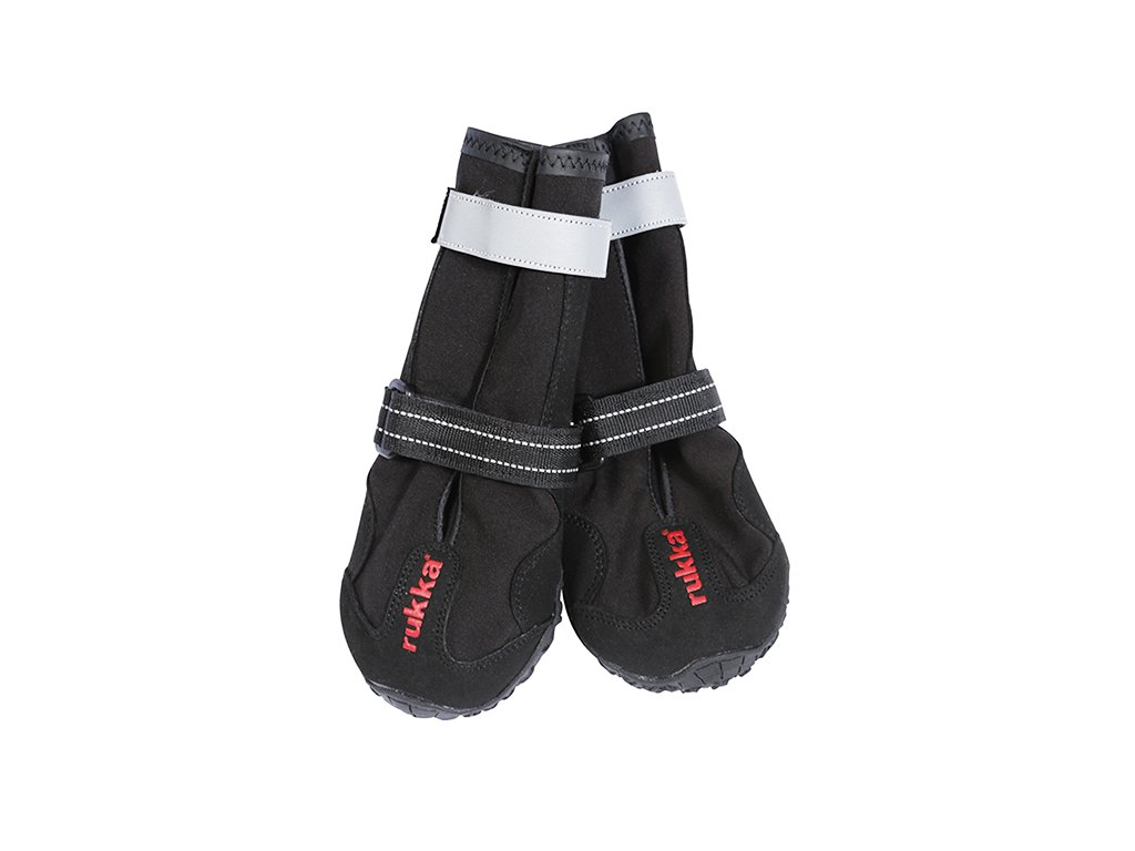 "Ochrana rebelských tlapiček i do toho nejnáročnějšího terénu." Boty jsou velice pohodlné, přesto extrémně odolné, s tvarovanou a ohebnou podrážkou, která nabízí zvýšenou flexibilitu s každým krokem. Díky své délce poskytuje nohám psa mimořádnou ochranu, například při chůzi v bahně nebo ve sněhu.Boty jsou speciálně ušité, aby se daly snadno nasadit a díky upínacím páskům s reflexními prvky vydrží na psí tlapce i při jakékoliv činnosti. Materiál je odolný stříkající vodě a dešti.