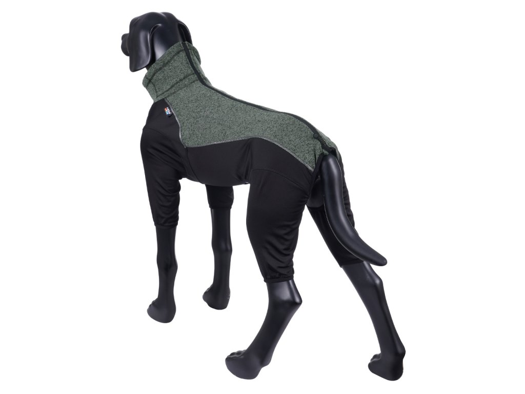 Dobře padnoucí kombinéza, která udržuje psa v teple za chladného počasí, je vyrobená z kombinace technických materiálů, které jsou velmi lehké na nošení a zároveň velmi pružné, aby se plně přizpůsobili pohybu psa. Vysoký límec a záda overalu jsou z technické pleteniny, spodní část kombinézy a nohy z extrémně elastického trikotového úpletu s hladkým povrchem, ze kterého lze snadno setřít špínu a rychle schne. Oba materiály mají na vnitřní straně měkký kartáčovaný vlas, který vytváří izolační vrstvu, jsou prodyšné a zároveň hřejivé.