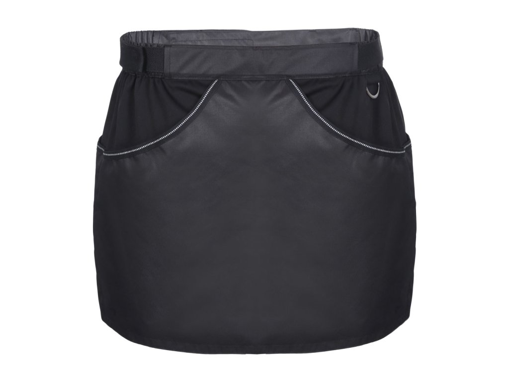 Chytrý střih výcvikové sukně Rukka využívá kombinaci materiálů. Povrch kapes je z vysoce voděodolné tkaniny s vodním sloupcem 10.000 a výbornou prodyšností 5.000. Zároveň je také velmi odolná vůči nečistotám, stačí otřít vlhkým hadříkem. Pružný softshell všitý do výkrojů kapes dělá sukni pružnou a příjemnou, takže hezky splývá kolem boků a přizpůsobí se pohybu.