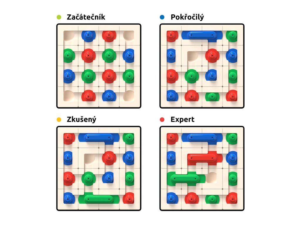 Vy oceníte jednoduchou změnu uspořádání od úrovně 1 pro začátečníky až po úroveň 4 pro velmi pokročilé, snadné čištění prvků i základny hlavolamu, bezpečný materiál a určitě i výzvu, vymýšlet nová velmi kreativní a odlišná uspořádání, nad kterými bude váš parťák stále znovu přemýšlet.