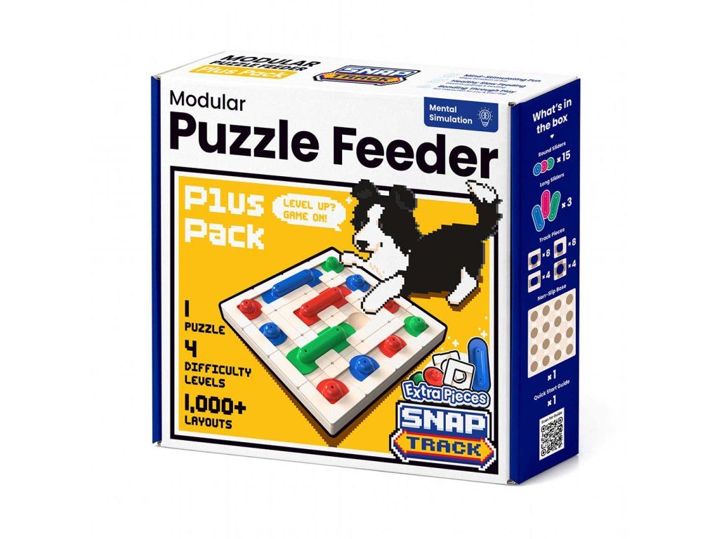 Rozšířená verze nabízí až 1.000 variant hry! SnapTrack Plus Pack s více dílky nabízí mnohem větší rozmanitost pro důmyslnější bludiště a kreativnější trasy. Užijte si nekonečnou zábavu pro začátečníky i pokročilé, která nezevšední.SnapTrack je unikátní hlavolam s pevnou základnou, který můžete poskládat pokaždé jinak. Tato modulární interaktivní hra je výzvou pro mazlíčky i pro páníčky. Vytvářejte vlastní bludiště jednoduchou změnou uspořádání. Fantazii se meze nekladou.