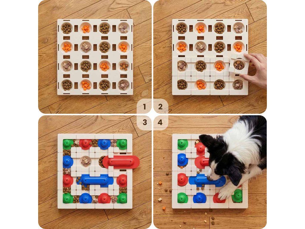 Možná to zní složitě, ale je to jednoduché! V balení najdete průvodce s několika základními layouty s variantami pro zvýšení náročnosti. Chytrá zábava pro mazlíčky i pro páníčky může začít.