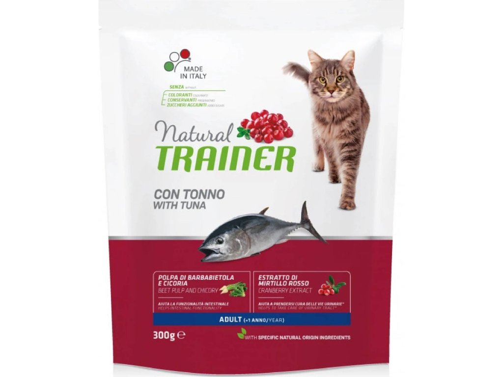 Krmivo Natural Trainer Cat Adult tuňák je určené pro dospělé kočky (1-7 let). Snadno stravitelné granule s obsahem kvalitního masa z tuňáka se hodí pro každou kočku. Krmivo má nejen výbornou chuť, ale zároveň dodá vašemu mazlíčkovi všechny potřebné živiny, vitaminy a minerální látky ve správném poměru. Obohaceno o Pomega3 (100 % jablečné omega-3 mastné kyseliny), Algae spirulina pro hebkou a přirozeně zbarvenou srst a extrakt z brusinek pro správné fungování močového ústrojí. Bez konzervantů, barviv a ochucovadel.