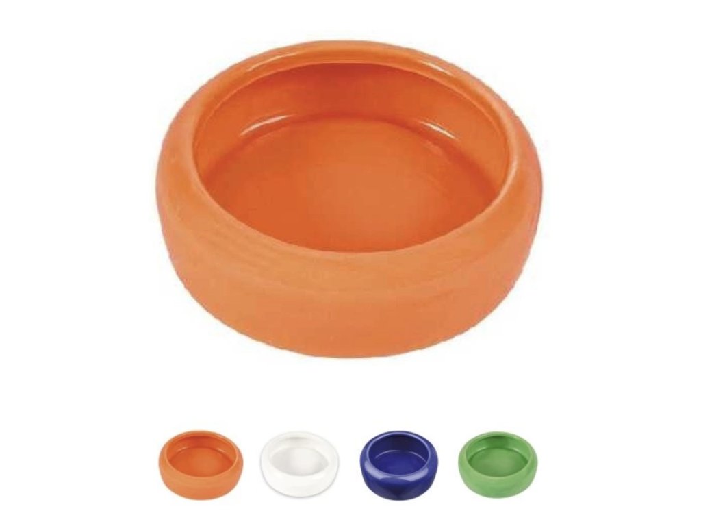 Keramická miska pro křečky a myši. Zaoblený okraj zabraňuje vyhazování jídla.