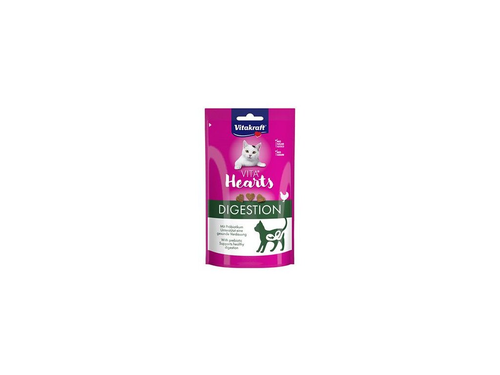 - S krmivem Vitakraft Vita Hearts Digestion Chicken dopřejete své kočce zdravou svačinku, která nabízí podporu trávení a chutnou pochoutku v jednom!
