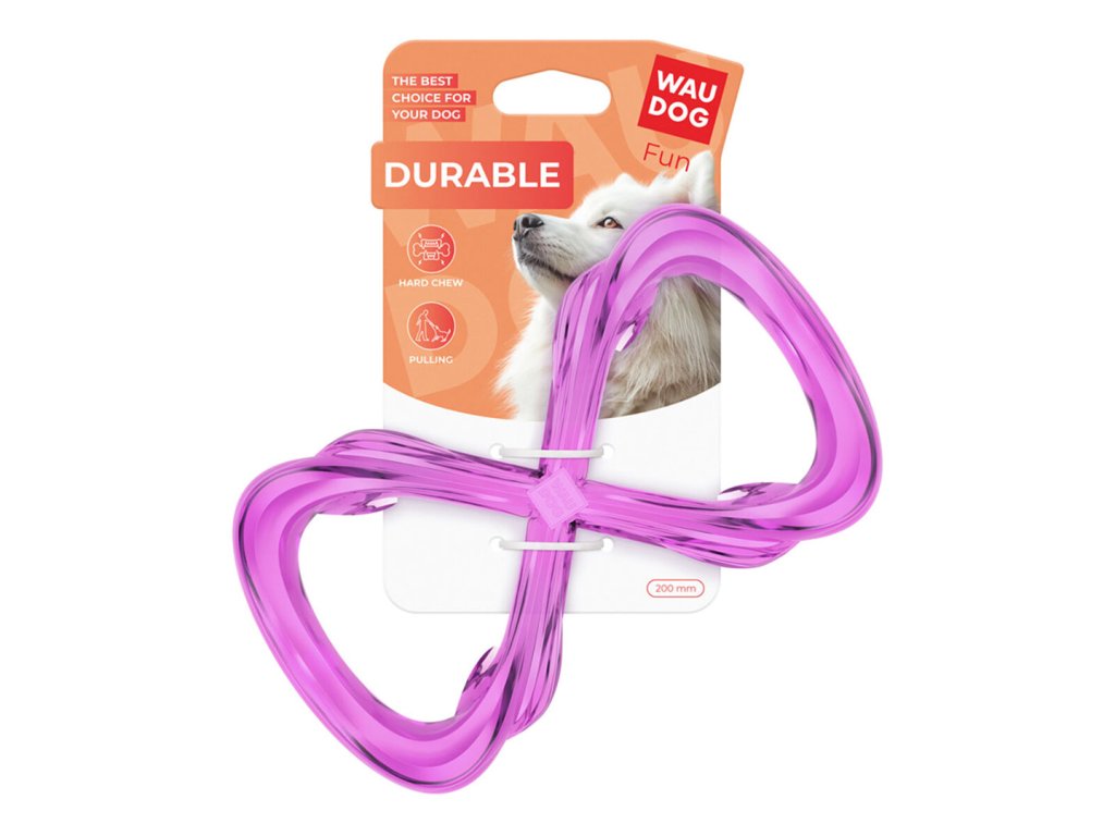 Hračka ve tvaru Osmičky je vynikající volbou pro přetahování, podporuje aktivní interakci mezi majitelem a psem. Její speciálně navržený tvar usnadňuje držení během hry, což poskytuje nejen zábavu, ale také pomáhá rozvíjet fyzickou sílu a vytrvalost psa.WAUDOG Fun Durable je řada ultra odolných hraček určených speciálně pro aktivní a energické psy. Tyto hračky jsou vyrobeny z bezpečného termoplastického kaučuku a nabízejí různé tvary, barvy a funkční vlastnosti.