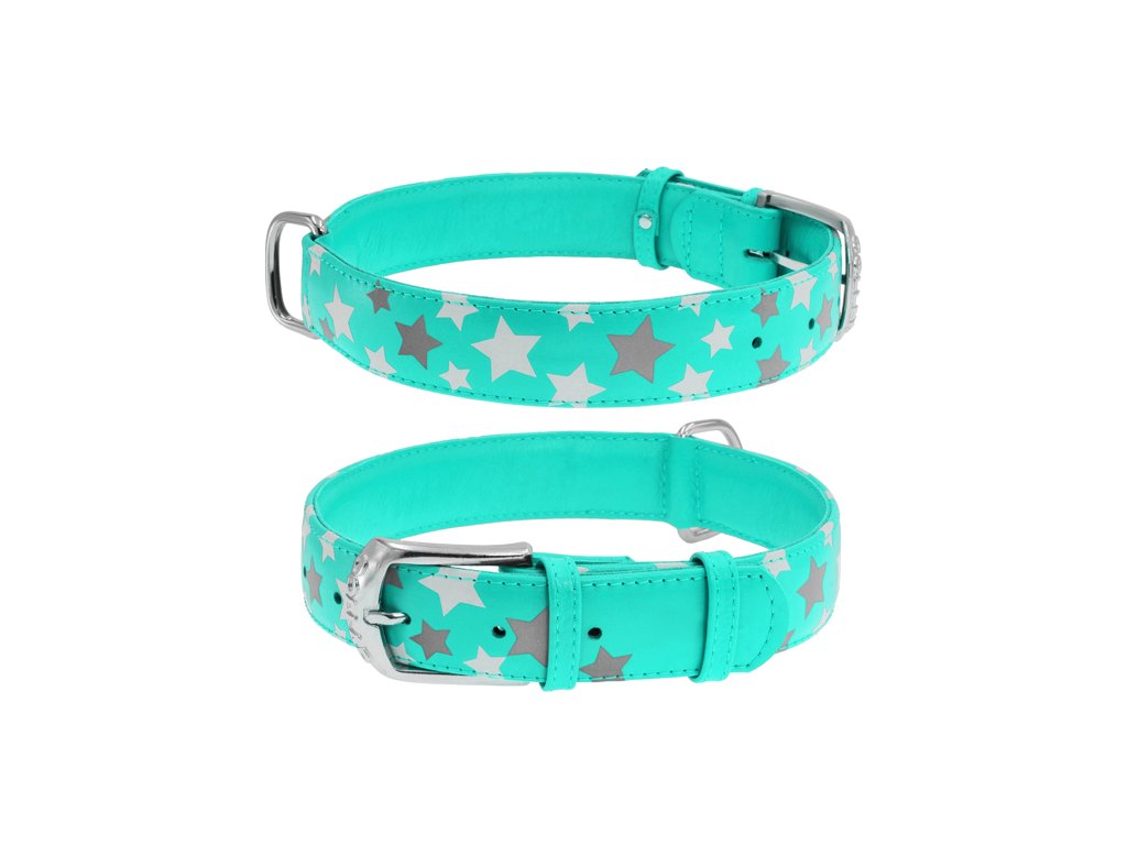 WAUDOG obojek kožený Stars mint (27-36cm/1,5cm)