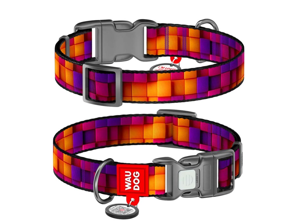 Pro milovníky zářivých barev je tu obojek s 3D kostkami se zámkem na sponě a s chytrou QR známkou zdarma! K obojku můžeš mít vodítko se stejným vzorem a podtrhnout tak svůj styl, tahle sada totiž vypadá úžasně!