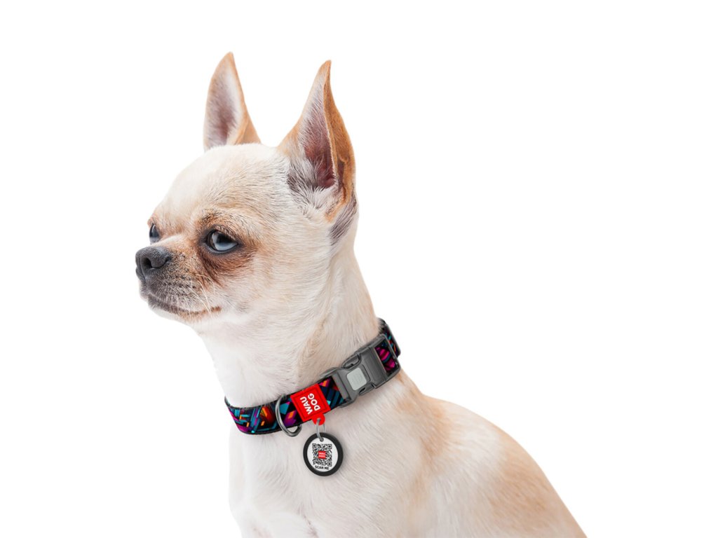 Vzor Laser Game je jak dělaný pro milovníky jasných barev a futuristických tvarů. Spona se zámkem a chytrá QR známka zdarma! K obojku můžeš mít vodítko se stejným vzorem, protože jen obojek nestačí, staň se hvězdou parku!