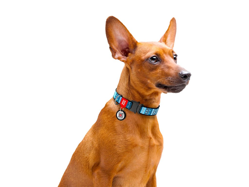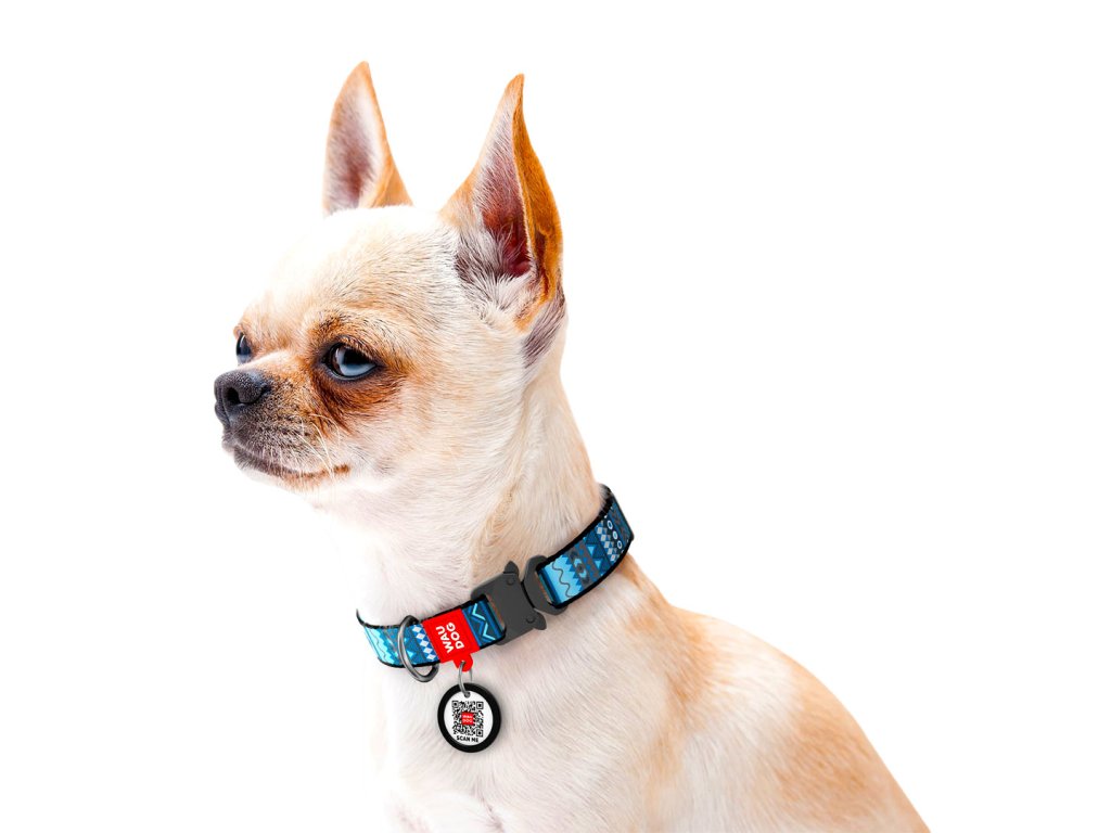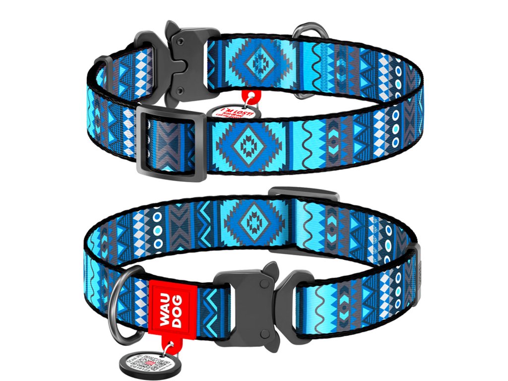 Ethno obojek v nejoblíbenější modré barvě a neprodávanější velikosti nyní s kovovou sponou! Chytrá QR známka zdarma! LIMITKA!!!
