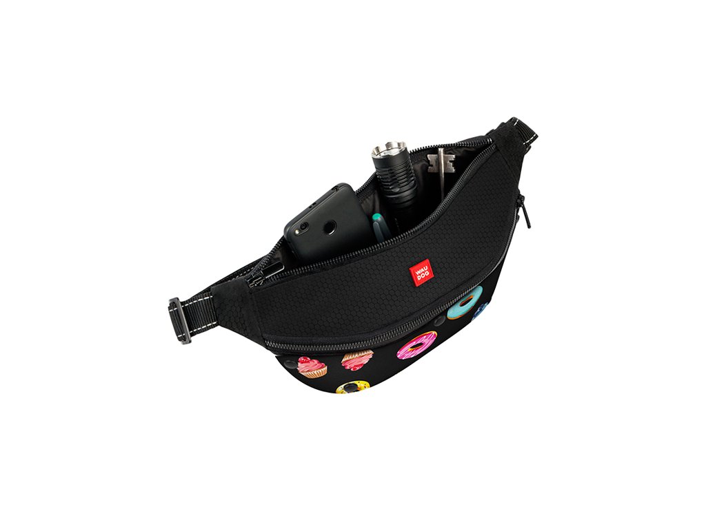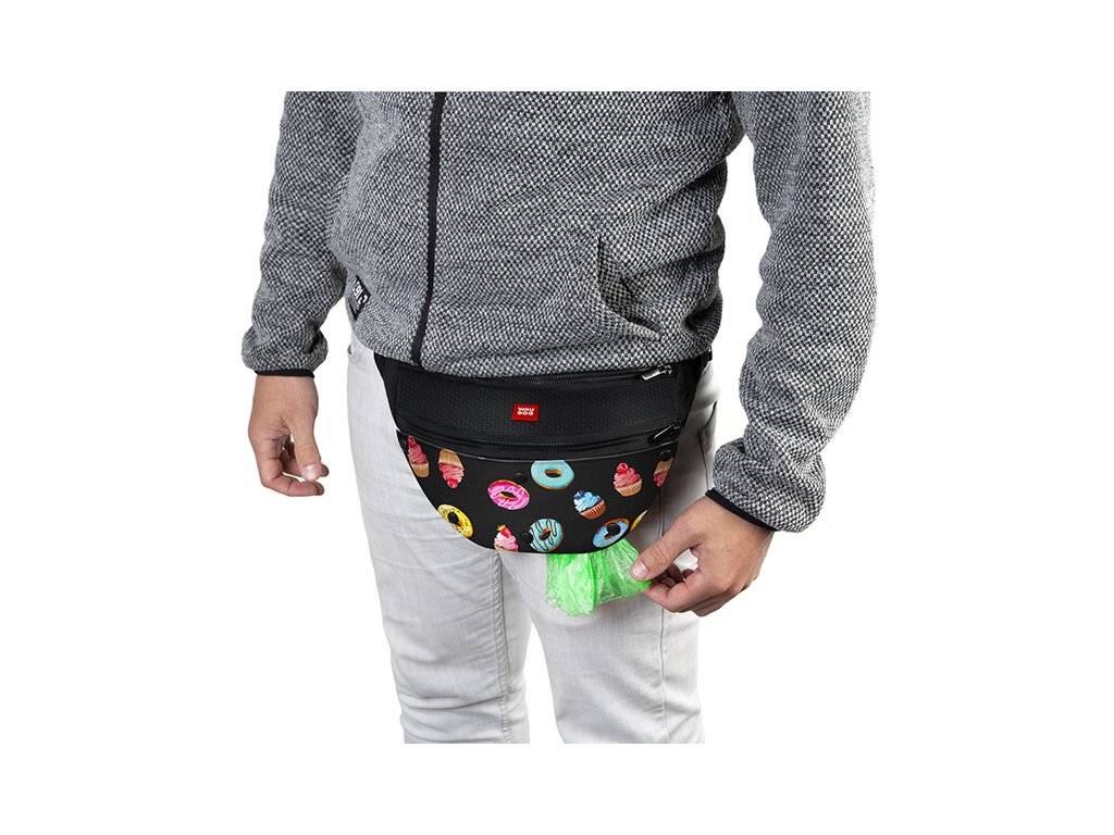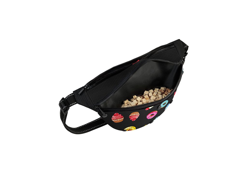 Tahle cool ledvinka neboli pamlskovník má dvě dostatečně prostorné kapsy, které jsou uzavíratelné na zip. Takže je skvěle využiješ na osobní věci jako jsou klíče, mobil apod. Vnitřní strana je ze speciálního materiálu, abyste snadno vyčistili drobky a jiné kousky. Vnější materiál je nepromokavý, takže i v pořádném slejváku je vše v suchu.