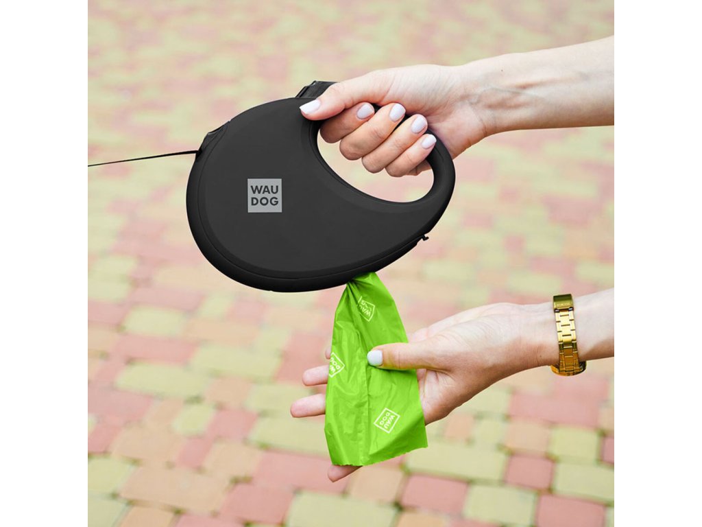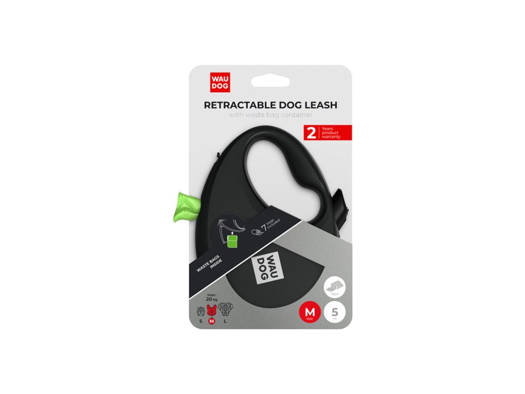 WAUDOG vodítko samonavíjecí se zásobníkem na sáčky Černé 20kg/5m/M