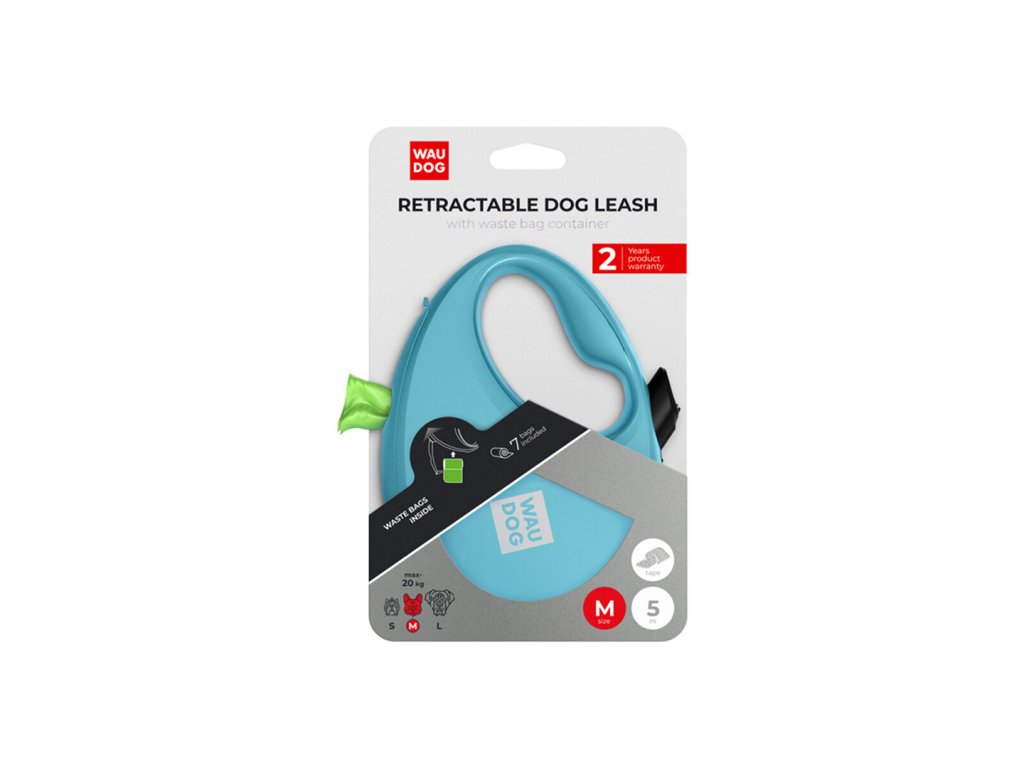 WAUDOG vodítko samonavíjecí se zásobníkem na sáčky Modré 20kg/5m/M