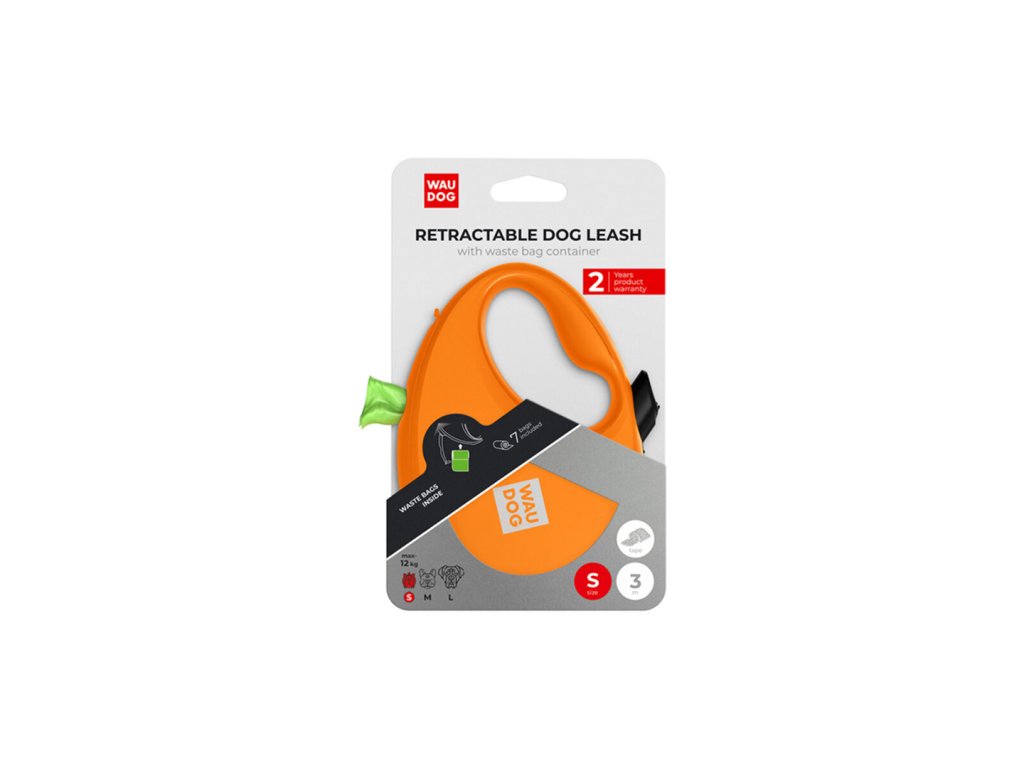 WAUDOG vodítko samonavíjecí se zásobníkem na sáčky Oranžové 12kg/3m/S