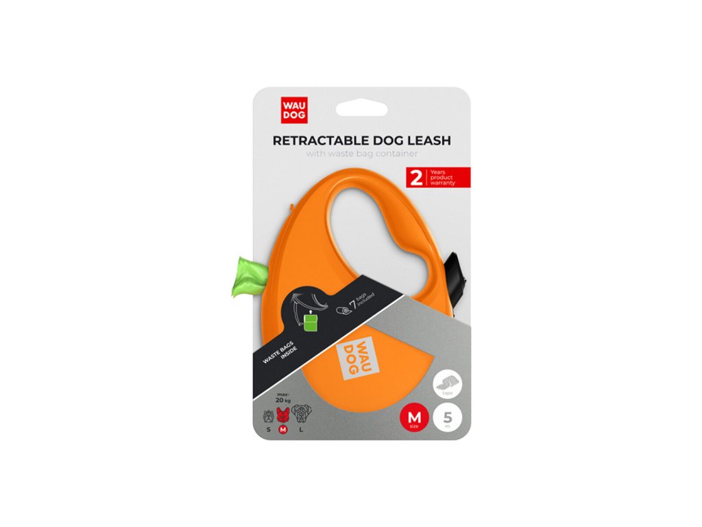 WAUDOG vodítko samonavíjecí se zásobníkem na sáčky Oranžové 20kg/5m/M