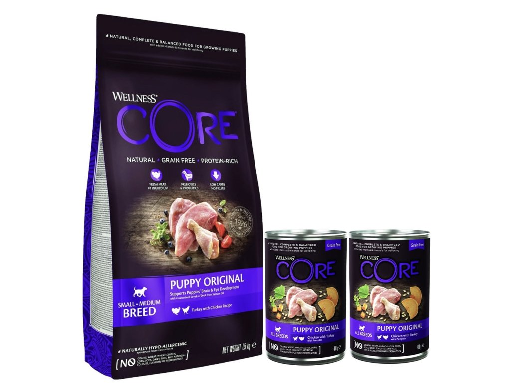 Wellness core PUPPY balíček granule + konzervy 1,5kg + 800g