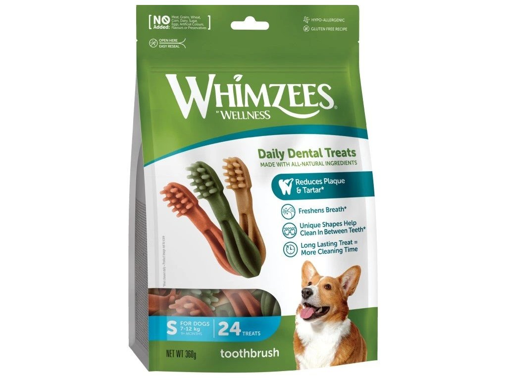 Dopřejte vašemu psovi oslnivý americký úsměv. Dentální pamlsek WHIMZEES bude vašeho psa bavit, napomáhá odstraňovat zubní plak, zabraňuje tvorbě zubního kamene, osvěžuje dech a pomáhá udržet zdravé dásně. Kartáček má jedinečné přírodní přísady, vysoký obsah vlákniny a nízký obsah kalorií a cukru. Nenajdete v něm žádné umělé přísady, konzervační látky nebo lepek. Pro psí tlamu je kartáček příjemný a váš mazlíček si proto čištění zubů snadno zamiluje a bude se na něj těšit.