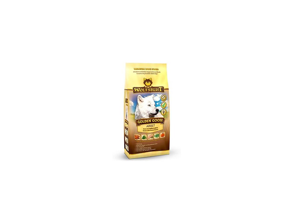 Vlci loví svou kořist od Skalistých hor Severní Ameriky, arktické tundry, hor a lesů Evropy až po pouště a stepi střední Asie. To jim dodává maso a vnitřnosti bohaté na živiny, ale také zeleninu, ovoce, bobule, kořeny a bylinky z obsahu žaludku kořisti. Obilí zde není zahrnuto. Vlk tak přijímá potřebné vitamíny, minerály, stopové prvky, enzymy a druhotné rostlinné látky. Vzhledem k tomu, že vlk je předkem všech psů, naše suché krmivo pro psy Wolfsblut je založeno na přirozených stravovacích návycích vlka. Obsahuje hodně masa nebo ryb v kombinaci se superpotravinami, které obsahují hodnotné ingredience – stejně jako v přírodě, bez obilovin. Náš výběr výjimečných druhů masa a superpotravin bohatých na živiny vychází z vlčích biotopů a jejich pestré stravy. Wolfsblut nabízí každému psovi druhově vhodnou a originální stravu a díky rozmanitosti odrůd si každý najde něco, co snese. Receptura na suché krmivo GOLDEN GOOSE kombinuje výživu vlků s nejnovějšími vědeckými poznatky o správné výživě psů.