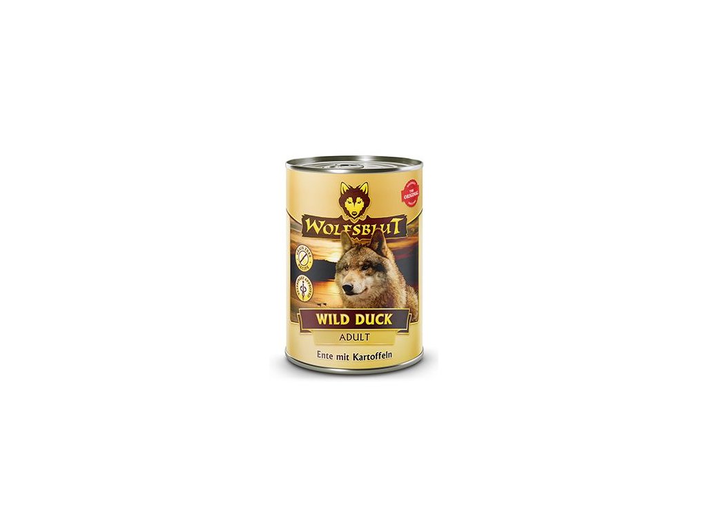 Vlci loví svou kořist od Skalistých hor Severní Ameriky, arktické tundry, hor a lesů Evropy až po pouště a stepi Střední Asie. Ty jim z obsahu žaludků kořisti poskytují maso a na živiny bohaté vnitřnosti, stejně jako zeleninu, ovoce, bobule, kořeny a byliny. Obiloviny nejsou zahrnuty. Takto vlk získává vitamíny, minerály, stopové prvky, enzymy a druhotné rostlinné látky, které potřebuje. Vzhledem k tomu, že vlk je předkem všech psů, je naše mokré krmivo pro psy Wolfsblut založeno na přirozených stravovacích návycích vlka. Obsahuje dostatek masa nebo ryb v kombinaci se superpotravinami s cennými ingrediencemi – stejně jako v přírodě, bez obilovin. Náš výběr výjimečného masa a superpotravin bohatých na živiny je založen na vlčím prostředí a jeho rozmanité stravě. Wolfsblut nabízí každému psovi druhově vhodnou a přirozenou stravu a díky široké škále druhů si každý pes najde to, co snese. Jednotlivé složky krmiva WILD DUCK byly vyvinuty ve spolupráci s veterináři na základě přirozené kořisti vlka a nejnovějších poznatků v oblasti holistické výživy psů. Díky tomu je mokré krmivo Wolfsblut jedinečné a obsahuje řadu superpotravin.