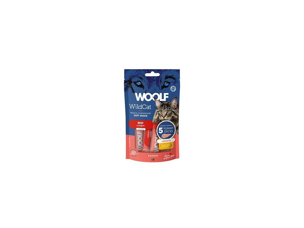 Doplňkové krmivo pro kočky, krémový pamlsek s příchutí hovězího, obohacený o krevetový olej.