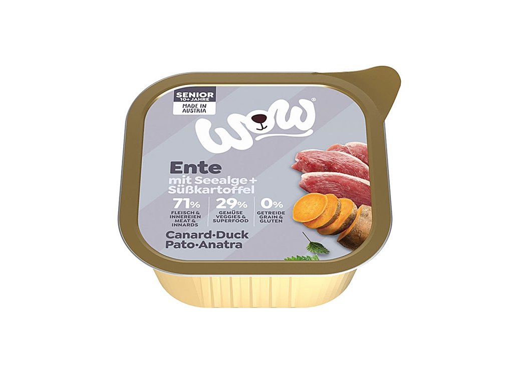WOW Kachna s batáty je vysoce chutné a lehce stravitelné kompletní mokré krmivo vhodné pro citlivé a starší psy všech plemen se 71% obsahem masa a vnitřností od předního rakouského výrobce. Maso je doplněno zeleninou, bylinkami z Alp a vysoce kvalitním lněným olejem pro zdravé kosti a klouby. Paštiky jsou ručně plněné v rodinné rakouské firmě z místních, většinou alpských, surovin ze zdravé přírody.Když chcete vysokou kvalitu bez kompromisů s rakouskou precizností a spolehlivostí (co na obalu, to uvnitř), velké množství čerstvého masa ve skvěle vyvážené receptuře vhodné i pro citlivé psí žaludky, chtějte WOW!