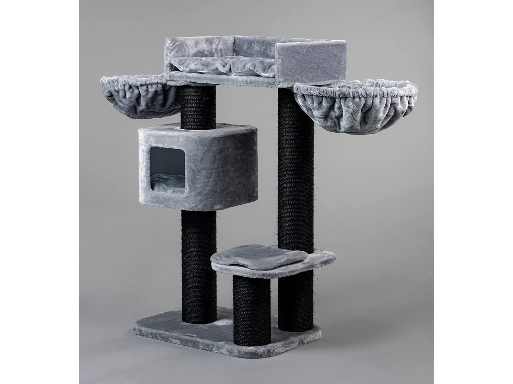 Kočičí strom Devon Rex je solidní a stylový kočičí strom s sloupky o průměru 15 cm a velmi velkým místem pro ležení v horní části kočičího stromu. Dům má také otočnou funkci, takže ji můžete otočit v libovolném směru. Dům má rozměry 40 cm x 40 cm široký x 27 cm vysoký se vstupem o rozměrech 20 cm x 20 cm se dvěma plyšovými polštáři vyrobenými z měkkého a hustého plyše.