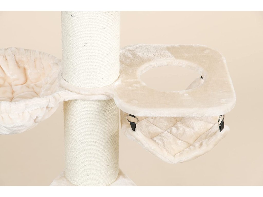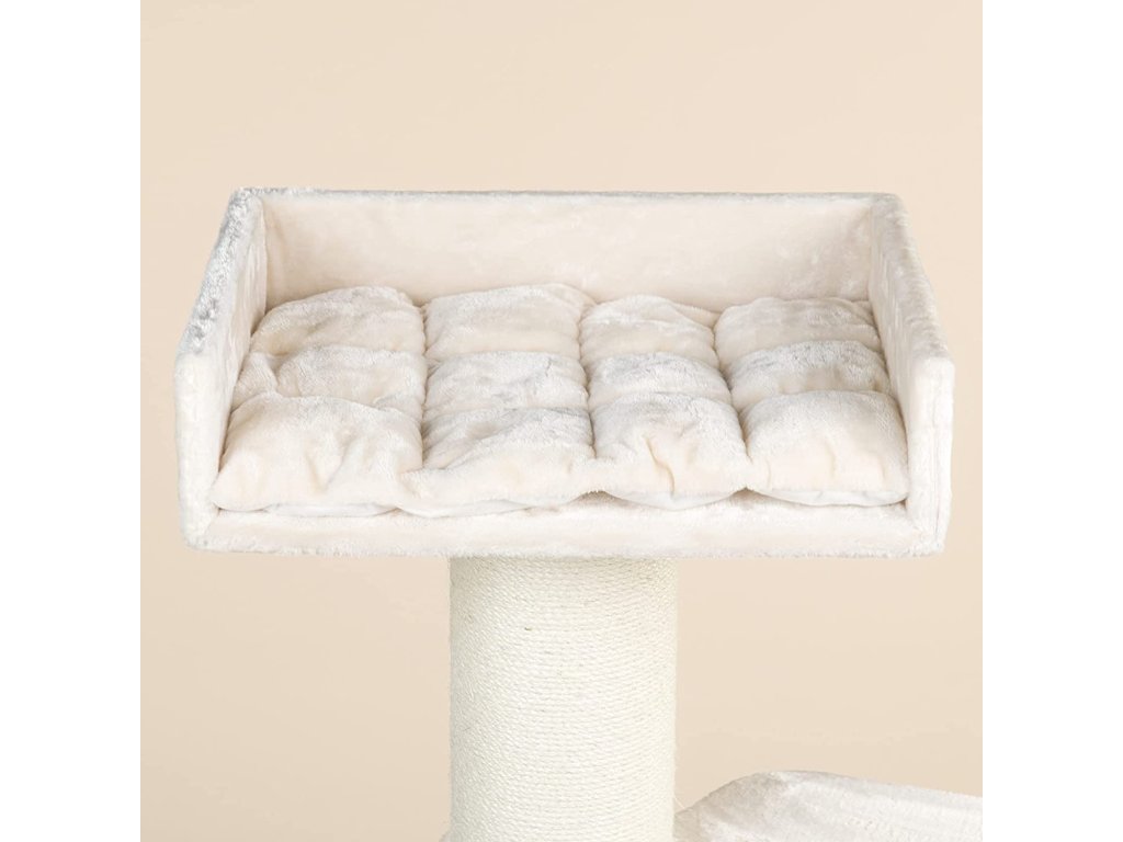 - Díky nádherná měkkému polštáři se bude vaše kočka cítit velmi pohodlně. Horní lenoška má také odnímatelný plyšový polštář, který lze vyprat. Je připevněn k hornímu lenoška pomocí suchého zipu.